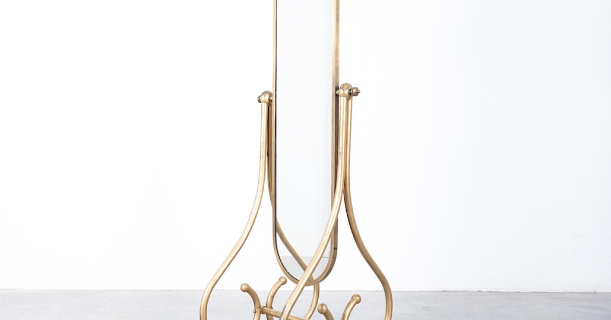 Cheval Mirror Neoclassical Floor Standing Brass Mirror, France 1970