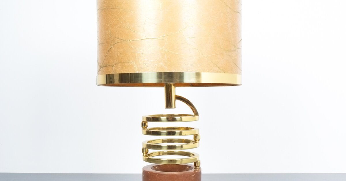 Willy Rizzo Adjustable Table Lamp for BF Red Marble Brass, 1970