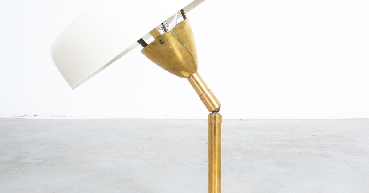 Eggshell Color Cute Adjustable Desk Lamp Brass, Italy Midcentury