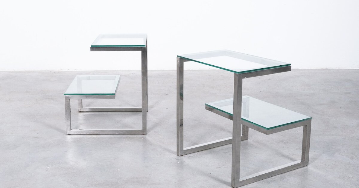 Belgo Chrome Pair of Side Tables, Belgium, circa 1970