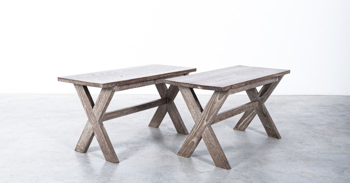 Cerused Oak Pair Of Tables, France, circa 1950