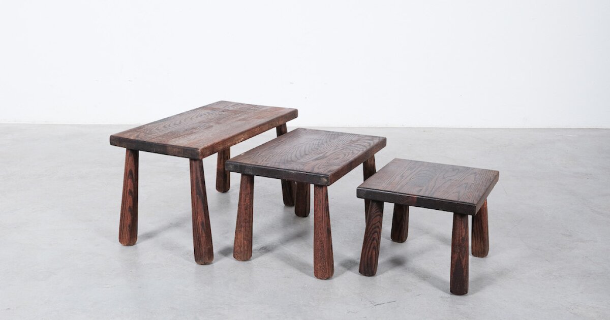 Nesting Tables Walnut Wood, Mid Century France circa 1955
