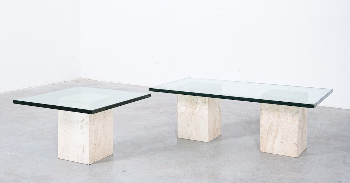 Travertine Tables from Three Blocks with Glass Tops, Italy, circa 1970