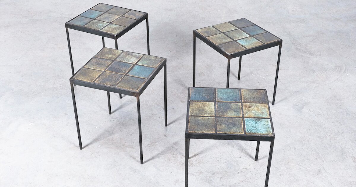 Guillerme et Chambron Tables Oak Wood With Tiles, 1960