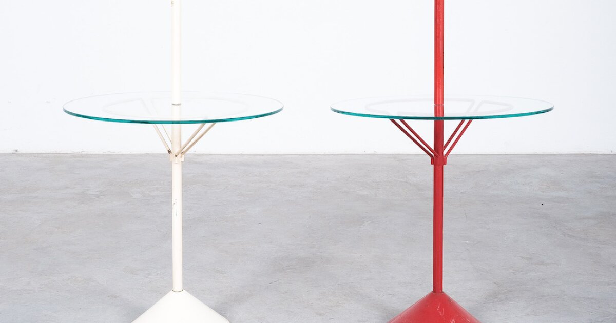 Red and White Metal Tables with Glass, Italy circa 1970